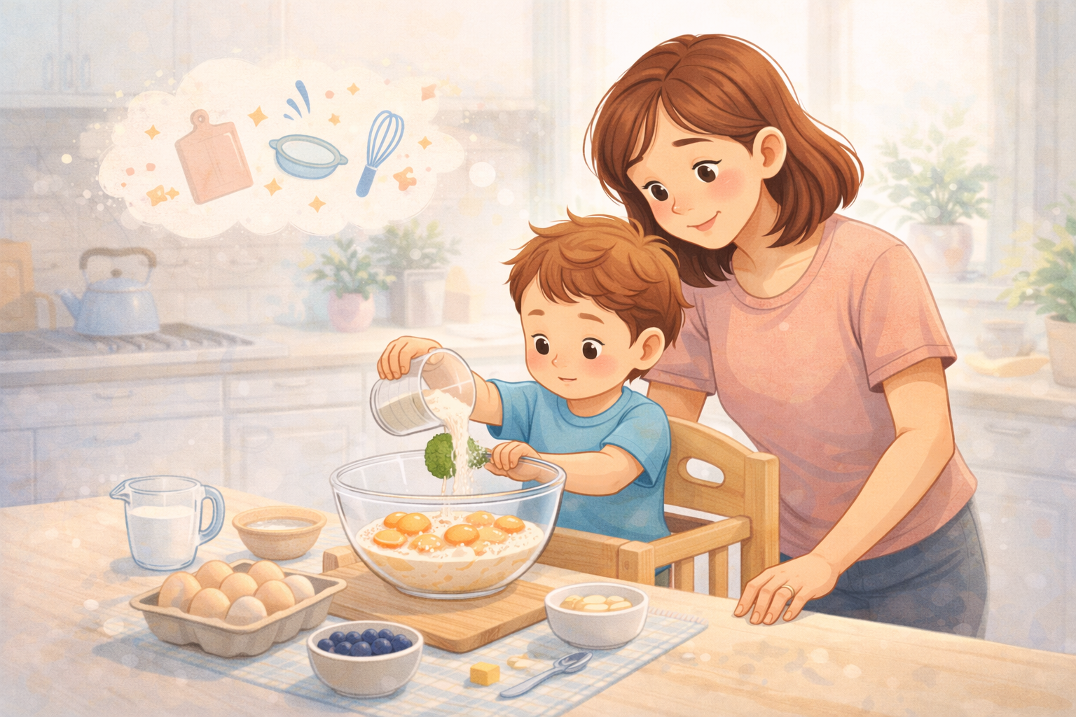 Quando il bambino partecipa alla preparazione del cibo, non “gioca a cucinare”: lavora davvero. Questo rafforza l’autostima e il senso di competenza. Inoltre, il contatto diretto con gli ingredienti favorisce una relazione più sana e consapevole con il cibo.